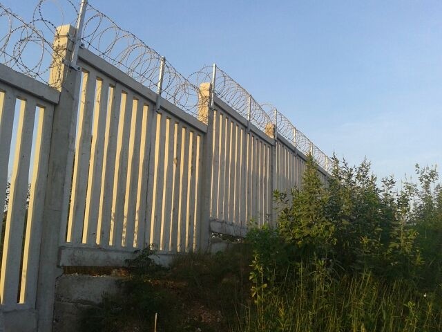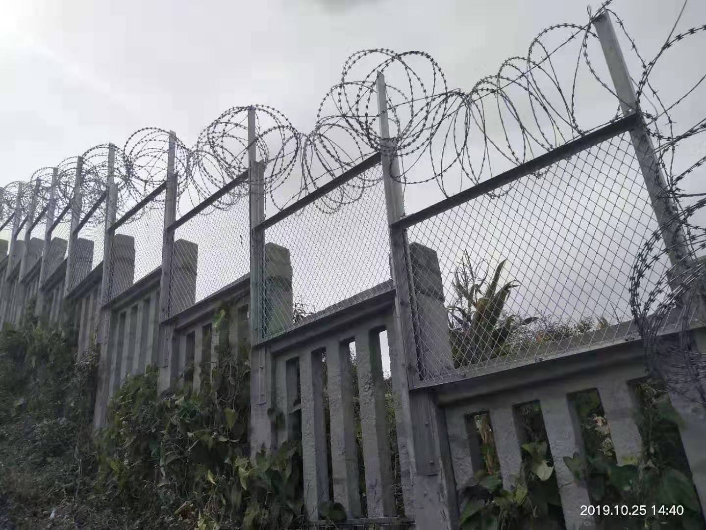 (4)的下緣距離鋼筋混凝士防護(hù)柵欄上緣的垂直距離為0.05m.鐵路刺絲滾籠是近年防護(hù)、隔離能力較強(qiáng)的新型產(chǎn)品,廣泛用于高檔住宅小區(qū)、、重要倉庫、監(jiān)獄、邊防軍事重地等需要封鎖圍禁場所。它的主要構(gòu)件有:刀刺滾籠( 由鋒利的刀片和高抗拉強(qiáng)度的芯線構(gòu)成)、縱向掛絲、立柱支架、加密支架、支架抱箍。安裝好的刺絲滾籠能很好地起到阻擋闖入者的作用