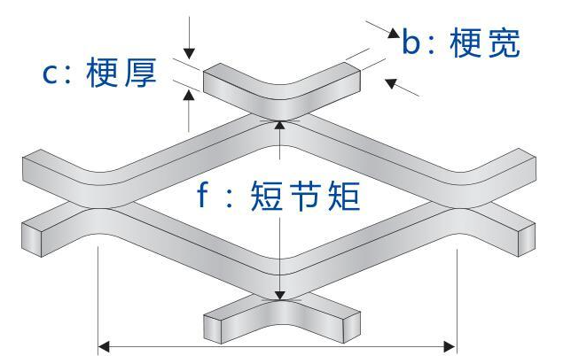 咱們平時(shí)看到的焊接網(wǎng)和編織網(wǎng)有絲的直徑(例如絲徑是4mm,說(shuō)的是鐵絲的直徑是4mm的)而鋼板網(wǎng)就不一樣嘍!不能簡(jiǎn)單的用絲徑來(lái)表示了,鋼板網(wǎng)不是圓形的不能用直徑來(lái)表示,它是由梗寬和梗厚組成的,鋼板網(wǎng)梗寬和梗厚:包括了梗的寬度和梗的厚度,梗寬指鋼板網(wǎng)菱形孔的邊左右量的寬度;鋼板網(wǎng)梗厚就是鋼板網(wǎng)菱形孔的邊上下量的厚度,是兩大必須要掌握的參數(shù)。